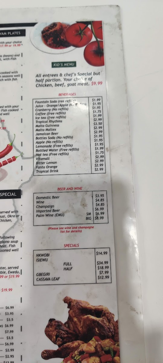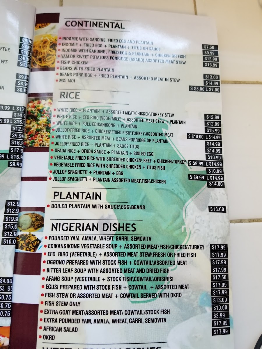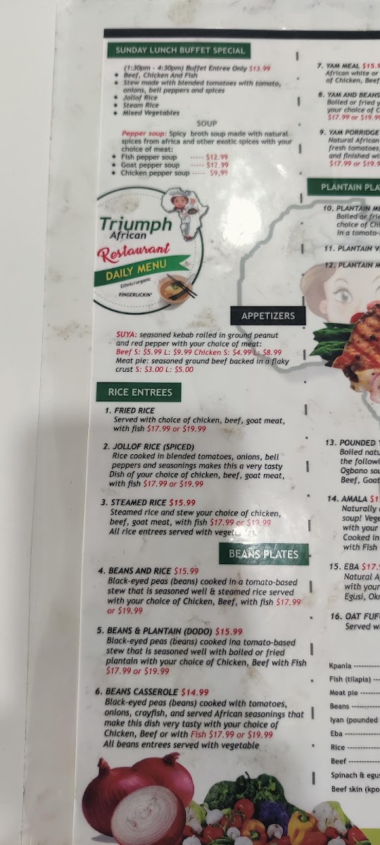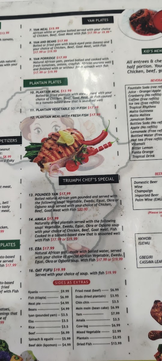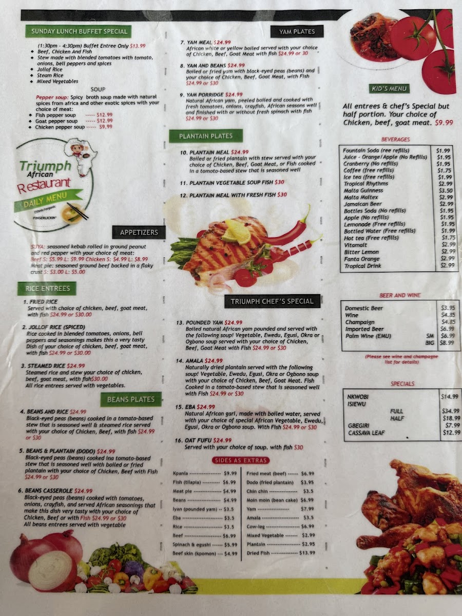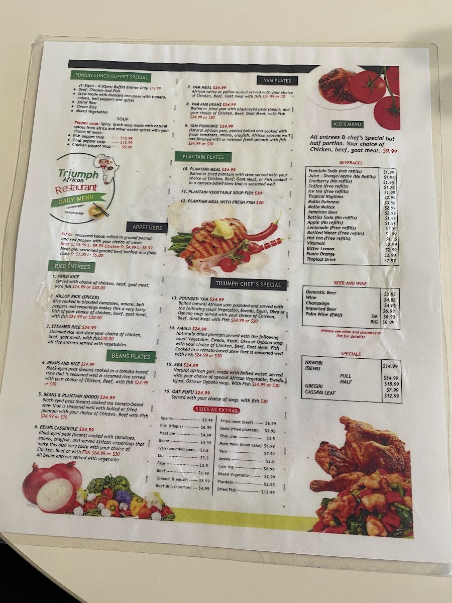 Triumph African Restaurant & Market Menu